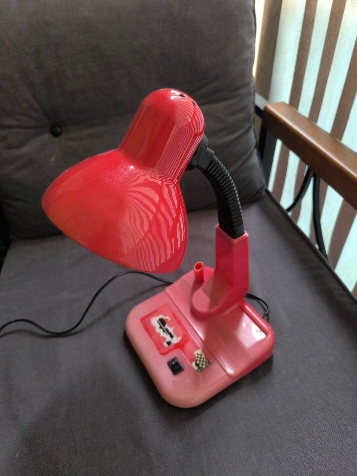 Ayarlanabilir boyunlu, tabanında aç kapa düğmesi olan çalışır durumda masa lambası. Çalışma veya ders için.Standart lamba duylarındandır.