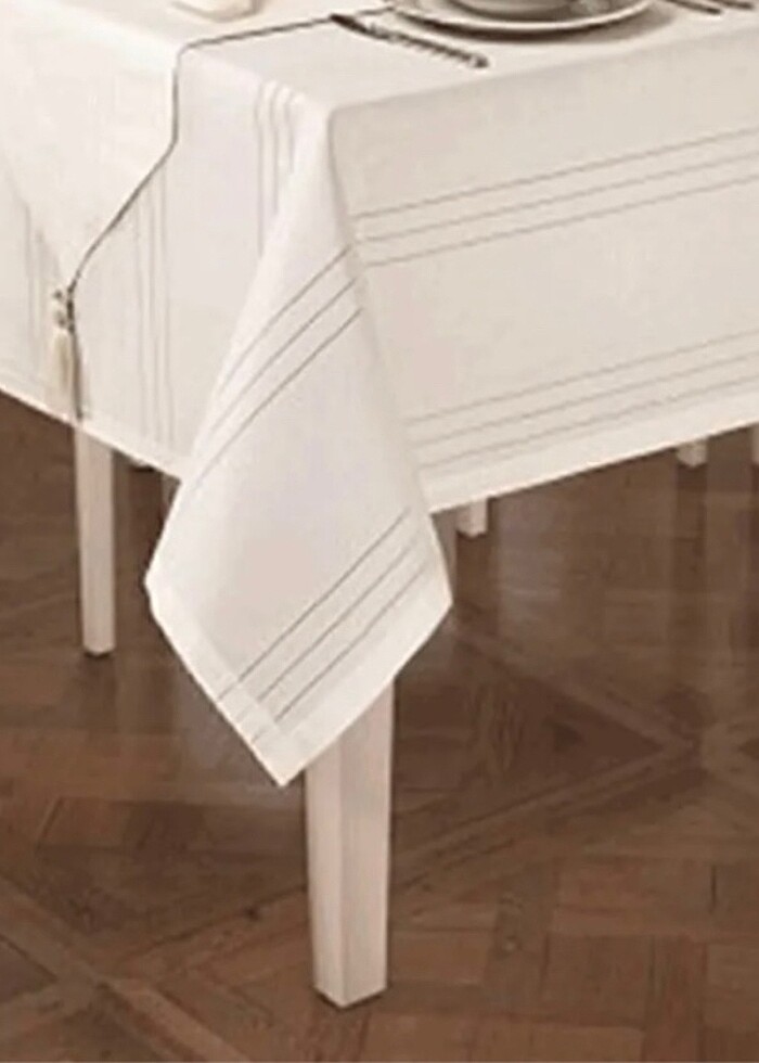 Ekru ajurlu İsveç keteni dertsiz masa örtüsü