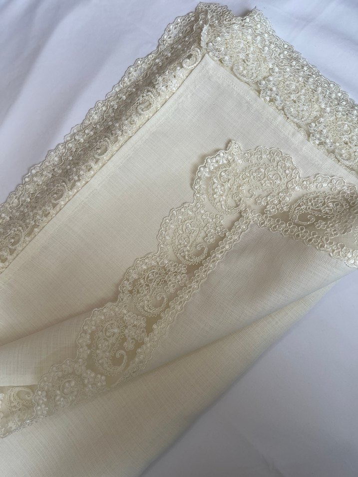 Krem rengi dertsiz leke tutmaz kenarı dantel ile çevrili masa örtüsü