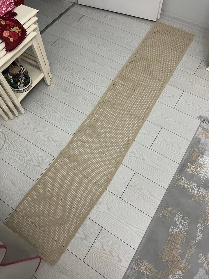 Masa örtüsüdür. Yaklaşık 2.5 metredir.El ile örülmüş oymalı polyester iptir.masanızın üzerine serilip cok şık bir örtüdür .yeni yapılmıştır almak isteyene yardımcı olurum