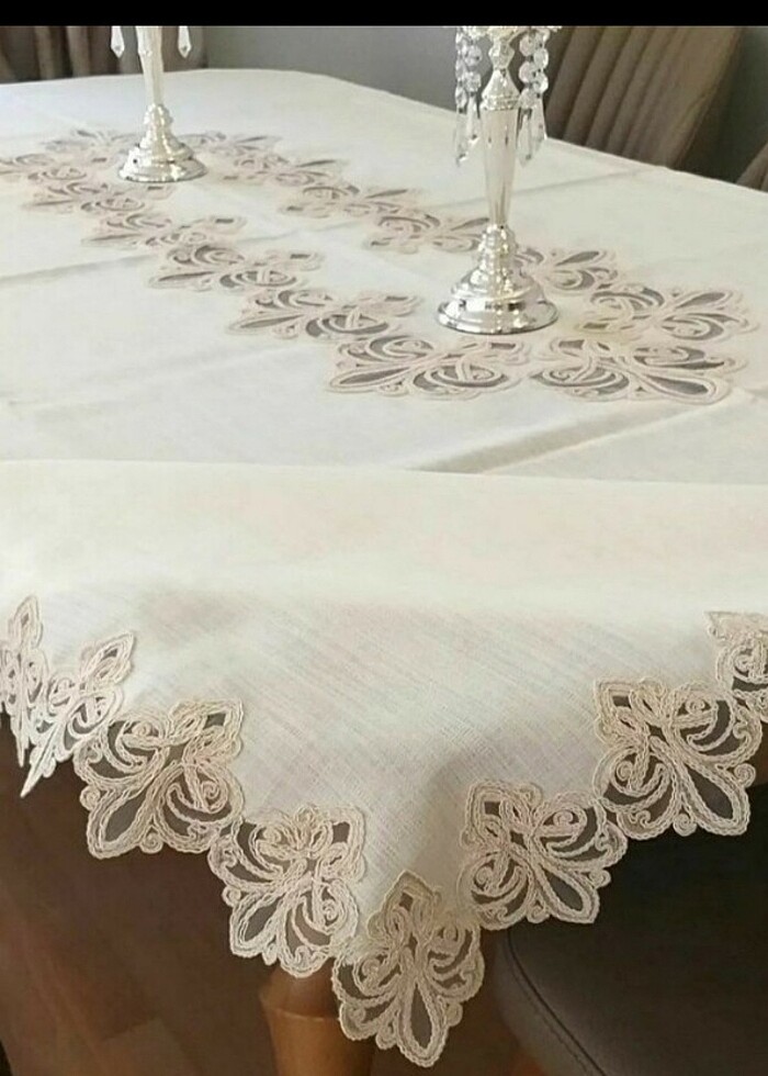 12 kişilik masa 12 adet peçete 1 adet runner 1 adet konsol örtüsü 1 adet orta sehpa 3500 TL
