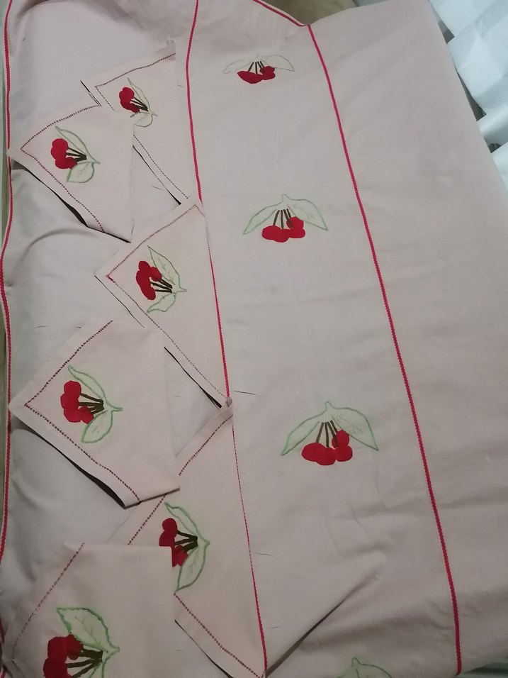 120/173 olculerinde masa 35 /33 olculerinde peçeteler 6 pecete bir masa seklinde bir kez kullanilip kaldırılmıştır temiz kullanilir yada tasarimlik icin olur