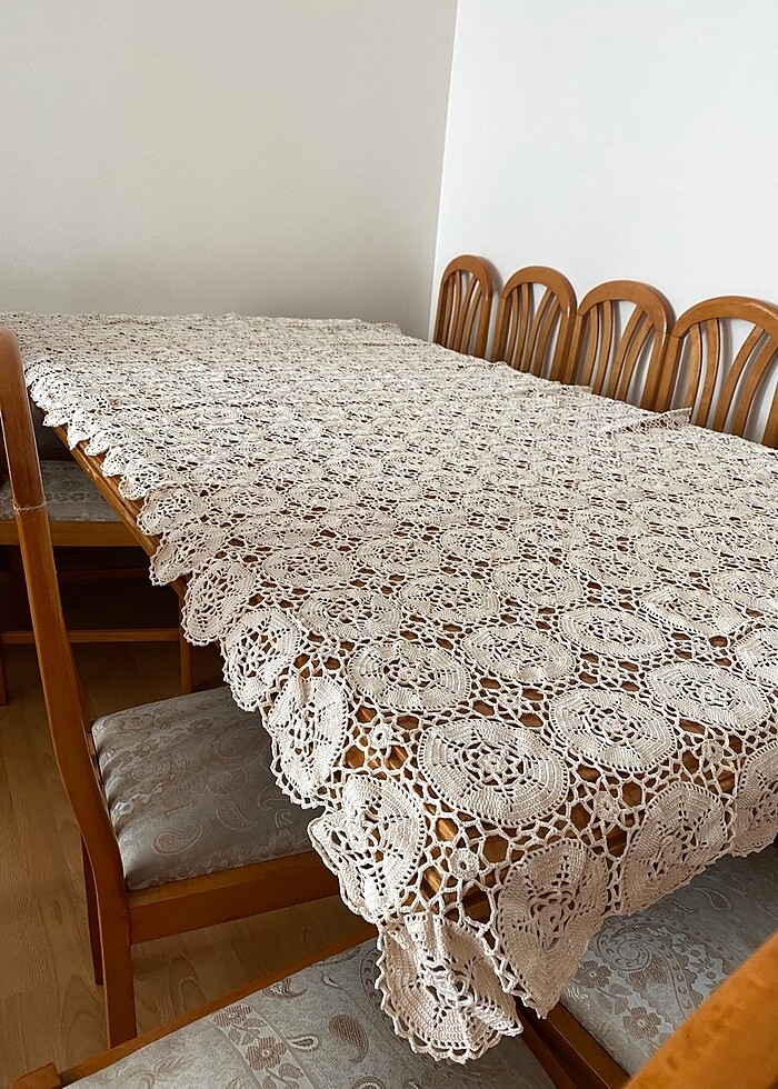 12 kişilik masa örtüsü,el emeği..sadece bi kaç yerinde sandık lekesi var yıkanınca çıkacaktır.