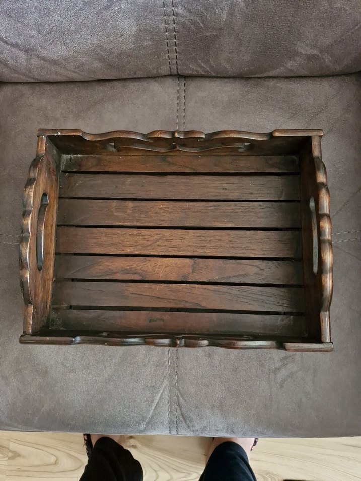 Koyu kahverengi ,firinlanmis masif ahsap, çıtalı taban ve oyma kenarlarla rustik bir görünüm sunar. Tepsi ya da dekoratif amaçlı kullanilabilir.