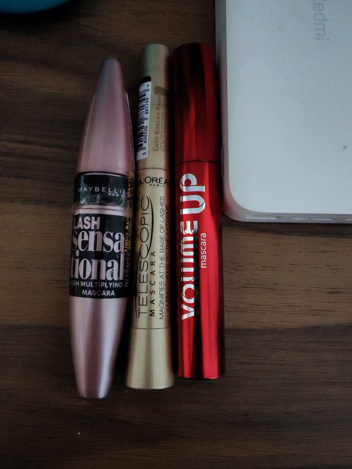 Hacim veren maskara. Canlı renk ve belirginlik sağlar. Üç ürünü birden satıyorum. Flormar volume ve Teleskopıc yeni daha alalı bır ay oldu. Maybellıne bır yıla yakındır elimde hepsı bır ıkı defa denendı sadece.