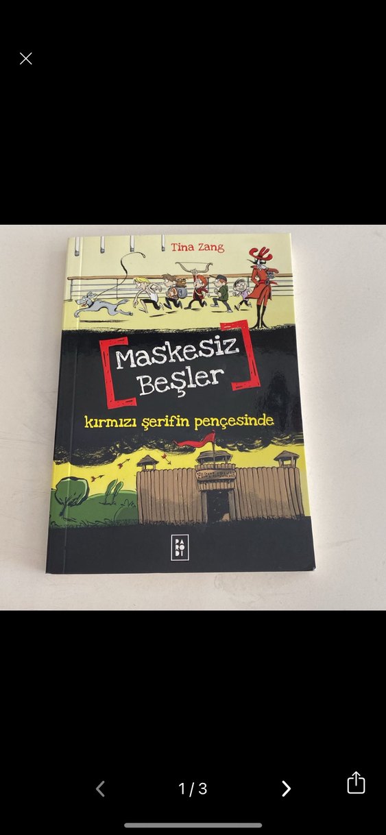 Tina Zang imzalı, canlı kapak illüstrasyonlarına sahip 'Maskesiz Beşler - Kırmızı Şerifin Pençesinde' adlı sanat kitabı.