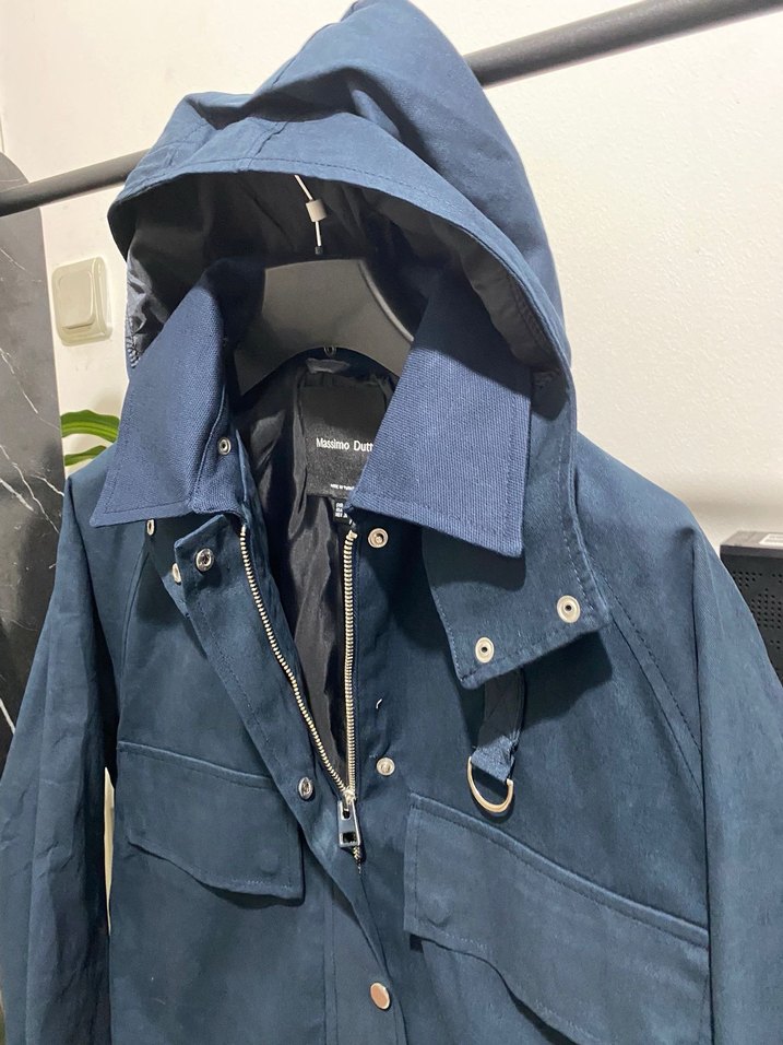 Lacivert süet kadın parka, çıtçıtlı ve fermuarlı kapama, uzun kollu, normal kesim ve midi boyda sokak stili için uygundur.