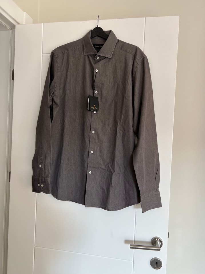 Gri renk, keten kumaştan uzun kollu erkek gömlek. Düğmeli, regular fit ve yakası notch detaylıdır. İş ortamı için uygundur.