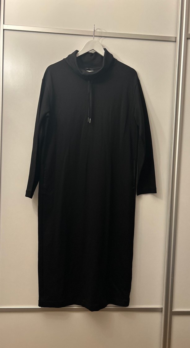 Siyah uzun elbise, yüksek yakalı ve uzun kollu, bol kesimdir. Yumuşak ve sıcak kumaştan yapılmıştır. Minimalist, desensiz tasarımıyla günlük kullanıma uygundur. Ölçüleri omuzdan uca 120 cm ikikolaltı arası 55 cm etek genişlik uçta 57 cm kol genişliği kolaltında 19 cm bilek te 12 cm hiç kullanmadım sıfır o yüzden iade kabul etmiyorum ölçüleri kontrol ederek sipariş verin beden small ancak geniş kesim