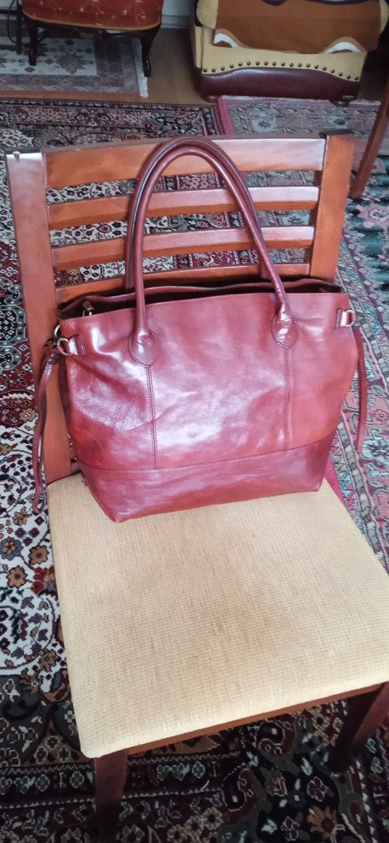 Massimo dutti marka, gerçek hakiki deri, ürün orijinaldir,yurt dışından alınmıştır.40*32*14cm. ölçülerinde, 2 Fermuar -2 Cep gözlüdür. Yanlardan çıtçıt açma kapama ile çanta genişliyor, ayrıca yanlardan sıkmalıdır.Hem tutma saplı, hemde ayarlanabilir omuz askılı,omuz askılığı orijinal değildir.Temiz kullanılmıştır.Her hangi bir olumsuzluk yoktur, sadece ağız kısmındaki Fermuar yakın kısımda astarda sürtme izi vardır.Resimde gösteriliyor.