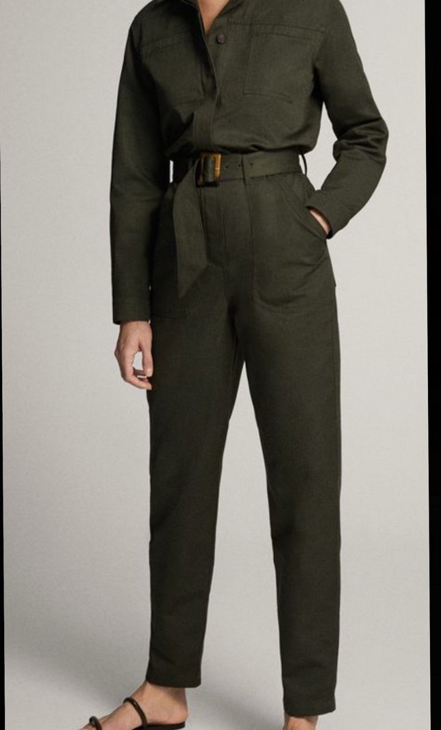 Massimo Dutti Haki Kemerli Uzun Kollu Tulum