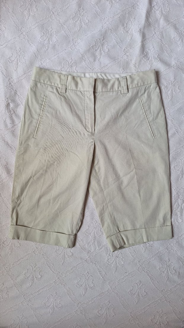 Bej Bermuda şortlar, regular kesim ve kısa boy ile rahat bir kullanım sunar. Sade ve şık tasarımıyla günlük ve ofis stiline uygundur. Ürün orijinal ve hiç kullanilmadi.