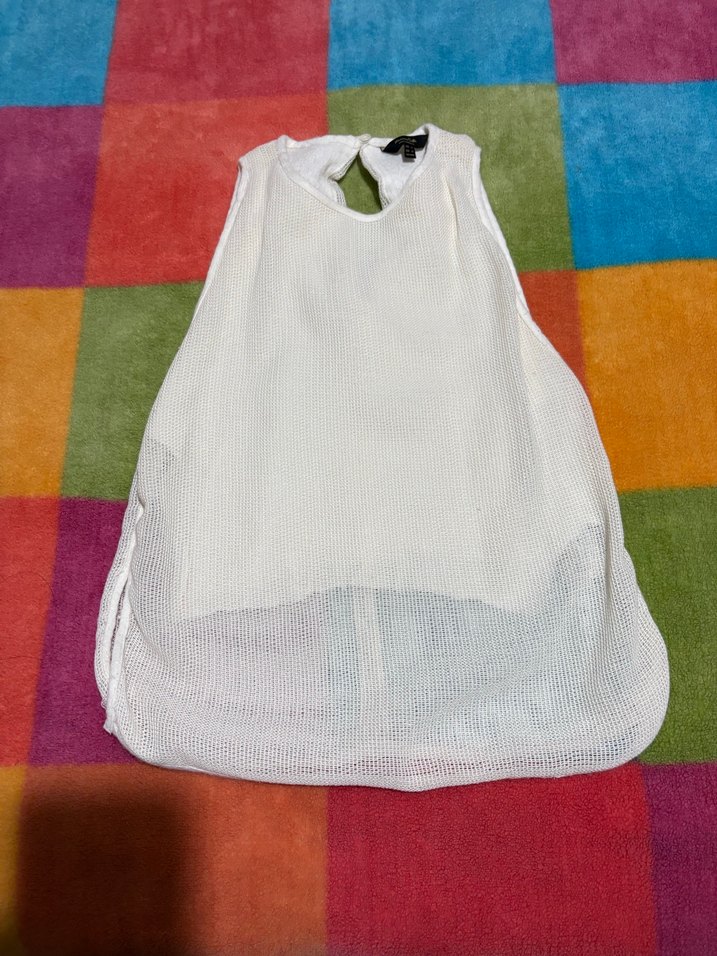 Massimo Dutti marka Nefes alabilen kumaştan yapılmış krem bluz, sade ve desensiz tasarıma sahiptir. Yuvarlak yakalıdır