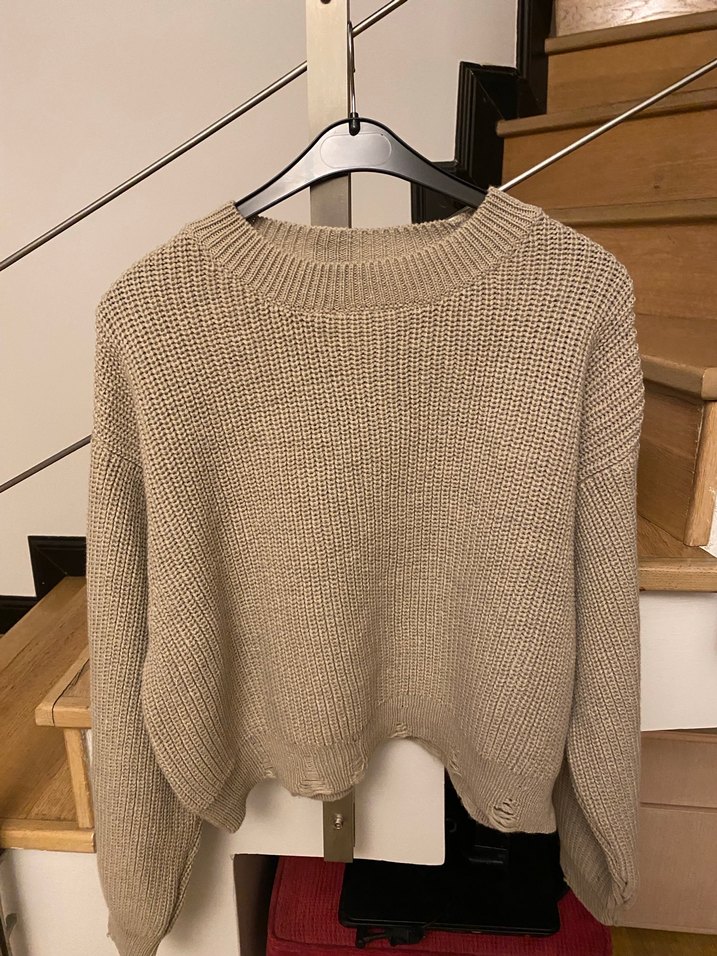 Vizon renkli, örgü kadın kazak, yuvarlak yaka ve uzun kolludur. Rahat kesimi ve normal boyu ile gündelik kullanıma uygundur. Göğüs ölçüsü 60 cm boy 45 cm