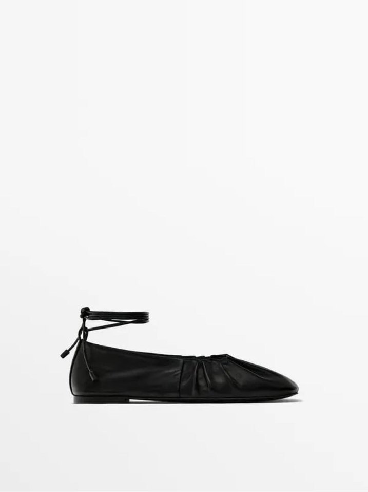 Massimo dutti Siyah Bağcıklı Minimalist babet Kadın Ayakkabı