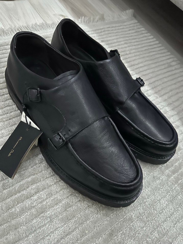 Sıfır etiketli massimo dutti..Ofis kullanımı için uygun, tokalı siyah deri klasik erkek ayakkabısı. Desensiz ve normcore tarzıyla klasik şıklık sunar.