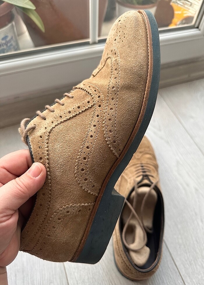 Massimo Dutti markasına ait orijinal erkek süet brogue ayakkabı. • Renk: Bej/Taba tonlarında • Numara: 44 • Ürün tipi: Brogue model, süet deri • Kullanım durumu: Çok az kullanıldı, genel olarak mükemmel kondisyonda. • Taban ve dikişlerde herhangi bir deformasyon bulunmamaktadır. • Günlük ve ofis şıklığına uygun, rahat bir modeldir. #MassimoDutti #MassimoDuttiAyakkabı #BrogueAyakkabı #SüetAyakkabı #ErkekŞıklığı #44Numara #KlasikAyakkabı #LuxuryStyle #OfisStili #AzKullanılmış #ErkekModa