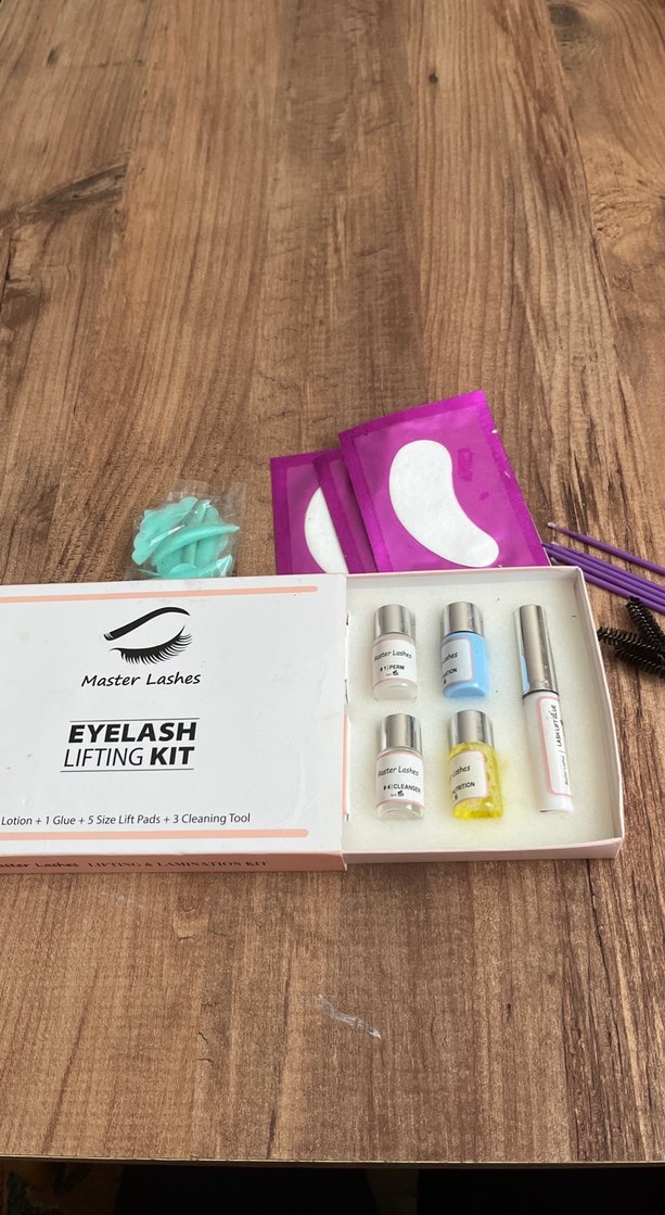 Master Lashes kirpik kaldırma seti, losyon, yapıştırıcı, kaldırma pedleri ve temizlik araçları içeren bej renkli kutuda profesyonel kirpik bakımı sağlar. ️