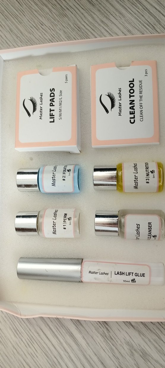 ürün yalnızca 2 veya 3 defa kullanılmıştır.çok az kullanılmıştır. yeni gibidir. 3 adet çiftli pedi mevcuttur. 2 adet temizleme aleti mevcuttur. 2 çiftli adet göz altı pedi bulunmaktadır.4 adet sürmek için alet mavi renkteki alet bulunmaktadır ve 1 adet kaş kirpik tarama alet bulunmaktadır .Master Lashes kirpik kaldırma seti; lift pedleri, temizleme aracı, çeşitli solüsyonlar ve kirpik yapıştırıcısı içerir.