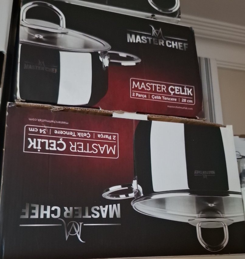 MasterChef 28 cm çapında, 2 parçadan oluşan gri renkli çelik tencere seti. Dayanıklı ve kullanışlıdır.