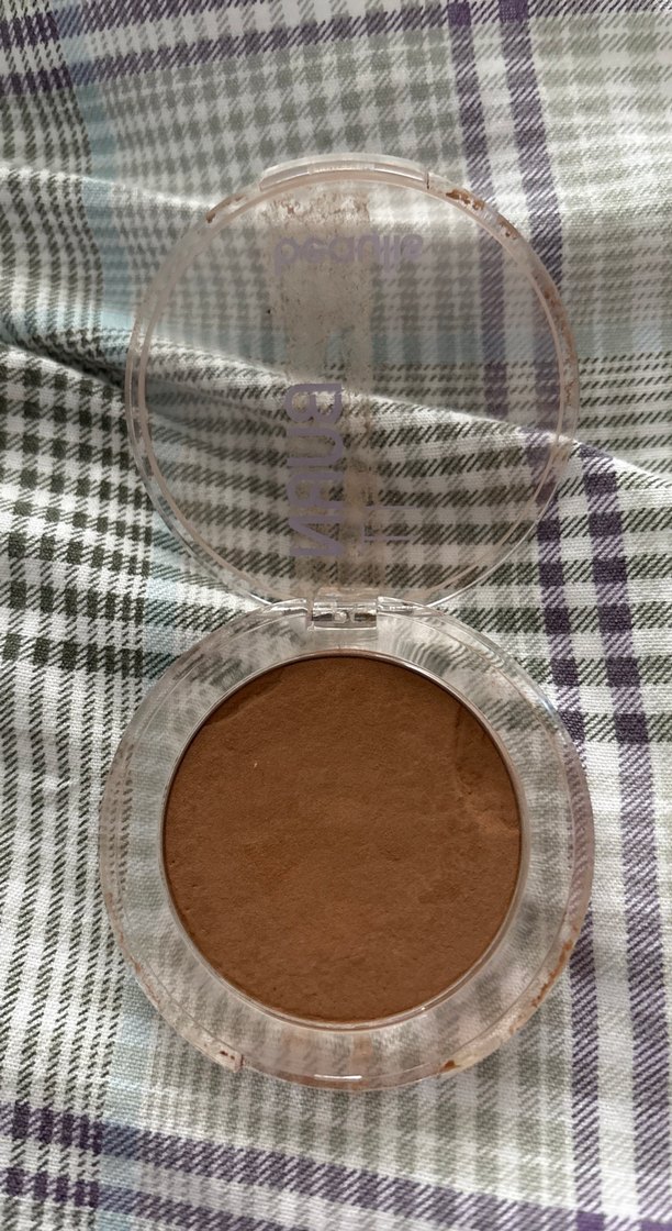 Parlak bej renkte, yanaklara hafif bir ışıltı veren kompakt allık.