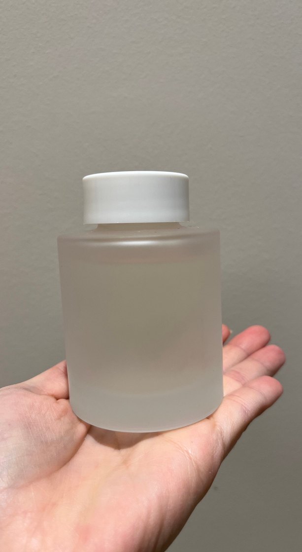 Beyaz kapaklı mat cam şişede, oda kokusu. Kullanımı kolay ve şık tasarım.