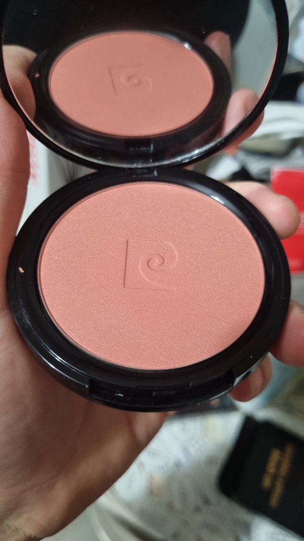Mat dokulu koyu pembe allık, doğal bir görünüm sağlar. Aynalı kompakt kutuda.
