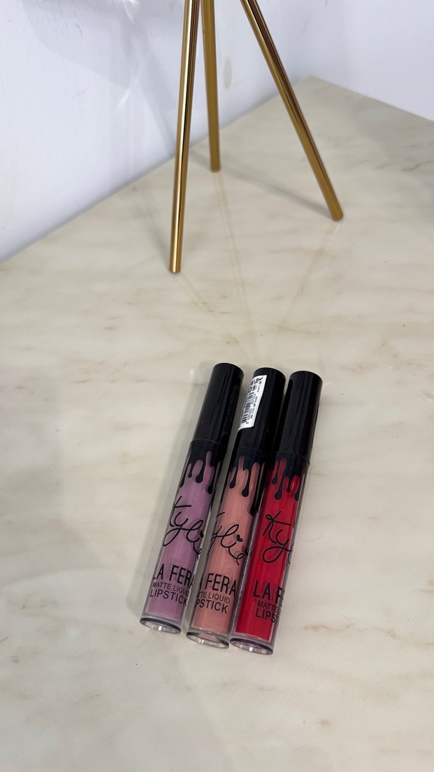 Üç adet mat ruj hiç kullanılmadı yalnızca denemek için kapakları açıldı kırmızı koyu mor ve açık ten rengi mat ruj 02,01,19