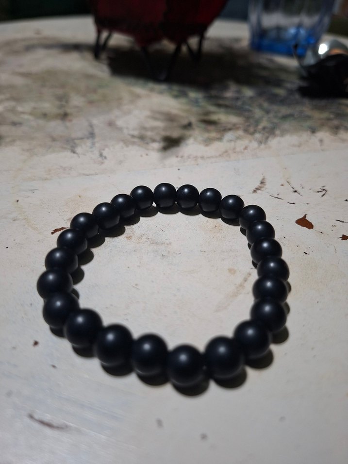 Mat siyah boncuklardan oluşan, minimalist gotik tarz bileklik