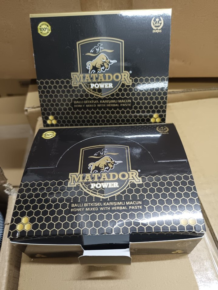 Matador Power, gençler için tasarlanmış, bal ve bitkisel macun karışımı içeren koyu altın renkli kauçuk kutu oyunudur.