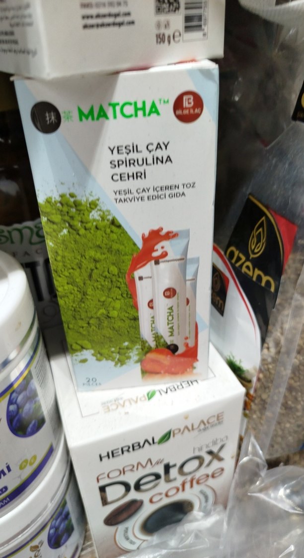 28g toz formunda, spirulina içeren matcha yeşil çay takviye edici gıda. Doğal bitkisel destek sağlar.