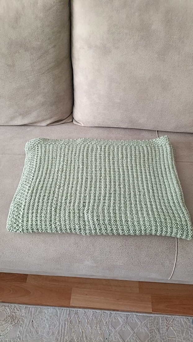 Yumuşak matcha yeşili örgü bebek battaniyesi, sade ve rahattır. 175x75 boyutundadır.