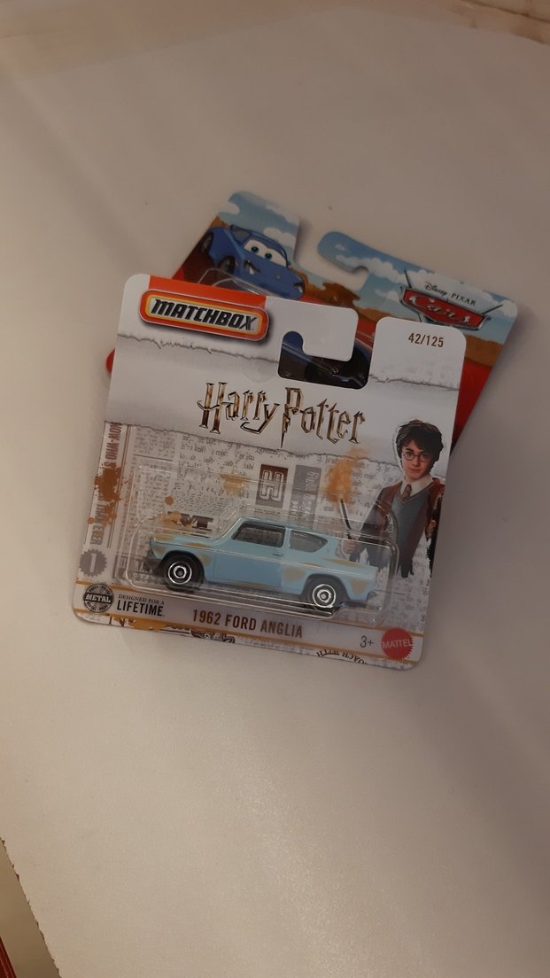 Matchbox Harry Potter serisinden açık mavi 1962 Ford Anglia oyuncak araba. 3 yaş ve üzeri için uygundur.