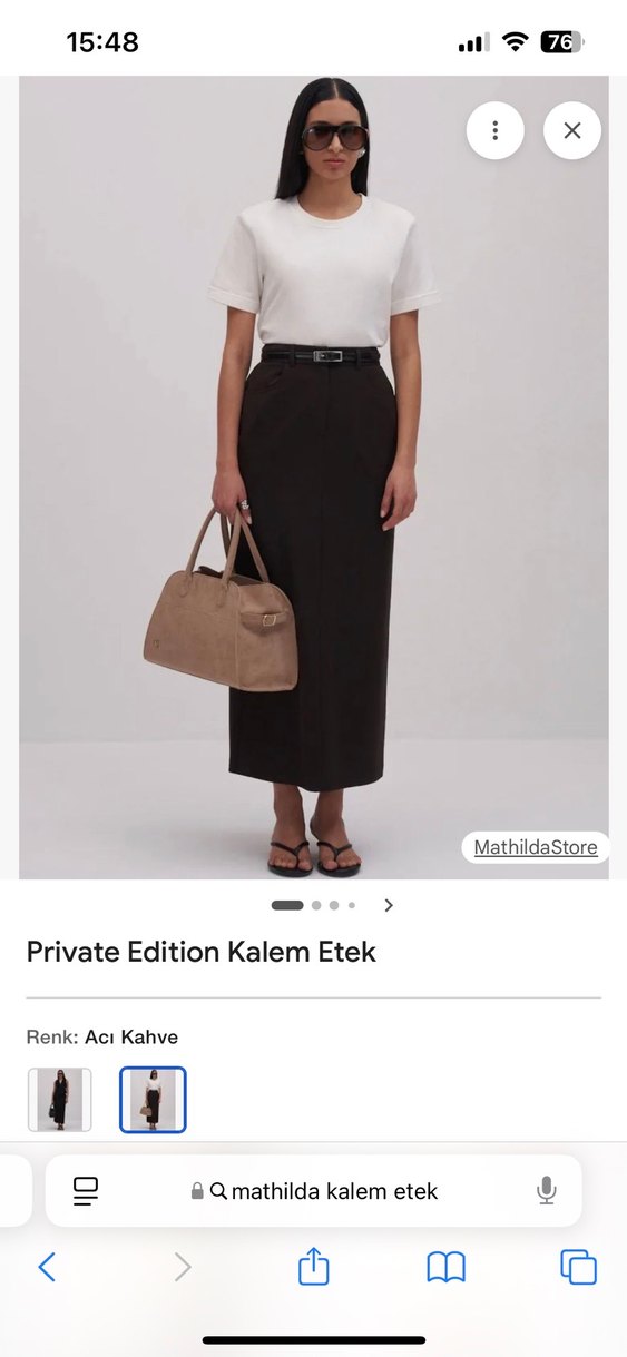 MathildaStore Private Edition açık kahverengi midi kalem etek, yumuşak süet kumaş ve rahat kesimle gündelik normcore şıklık sunar.