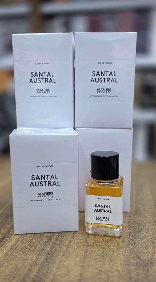 Matiere Premiere'nin Santal Austral kadın parfümü, şık siyah kapaklı şişede sunulan zarif bir kokuya sahiptir.