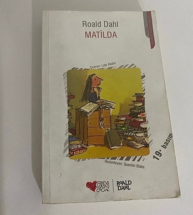 Roald Dahl'ın Matilda adlı romanı, Lale Akalın çevirisi ve Quentin Blake çizimleriyle. 19. baskı, Can Çocuk yayınevi.