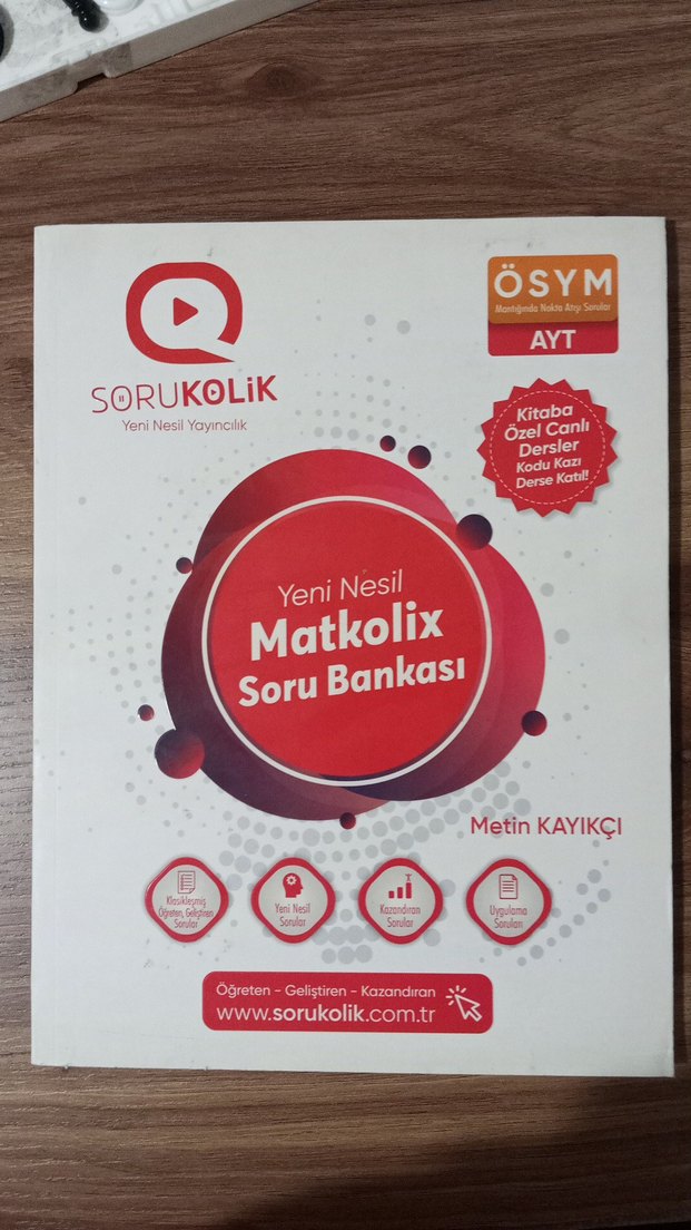 Metin Kayıkcı tarafından hazırlanan Matkolix Yeni Nesil AYT soru bankası, canlı ders kodları ve uygulama testleri içerir.