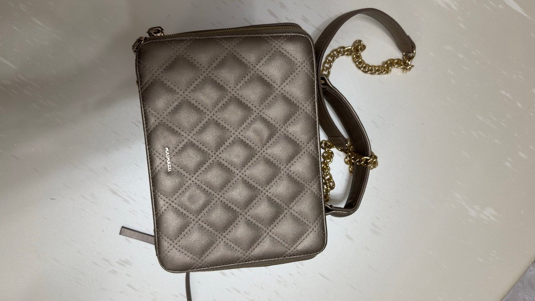Vizon deri ve zincir detaylı, klasik ve modern tarzı birleştiren kadın çantası. Günlük kullanıma uygun şık tasarım.
