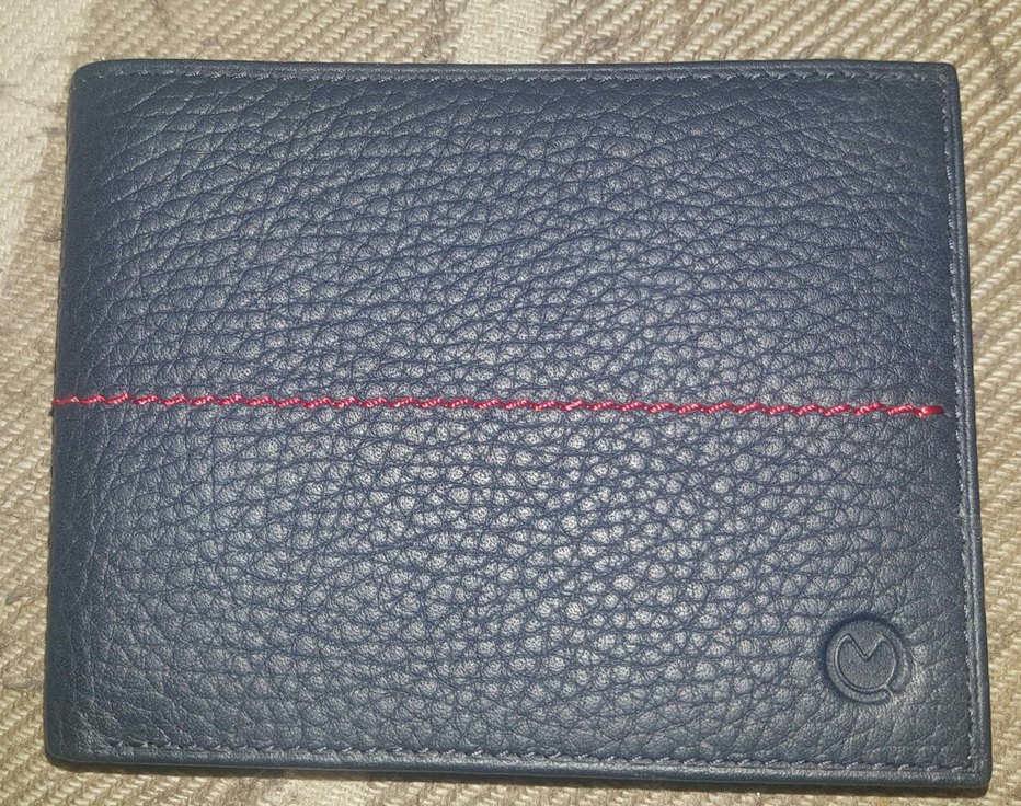 matmazel lacivert deri erkek cüzdan, minimal tasarım ve kırmızı dikiş detayı ile sade ve şık görünüme sahiptir.