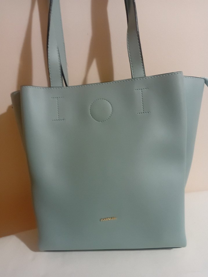 Pastel mavi renkte suni deri çanta. Normcore tarzda, gündelik kullanıma uygun,. 28×26×13 cm ebatlarında