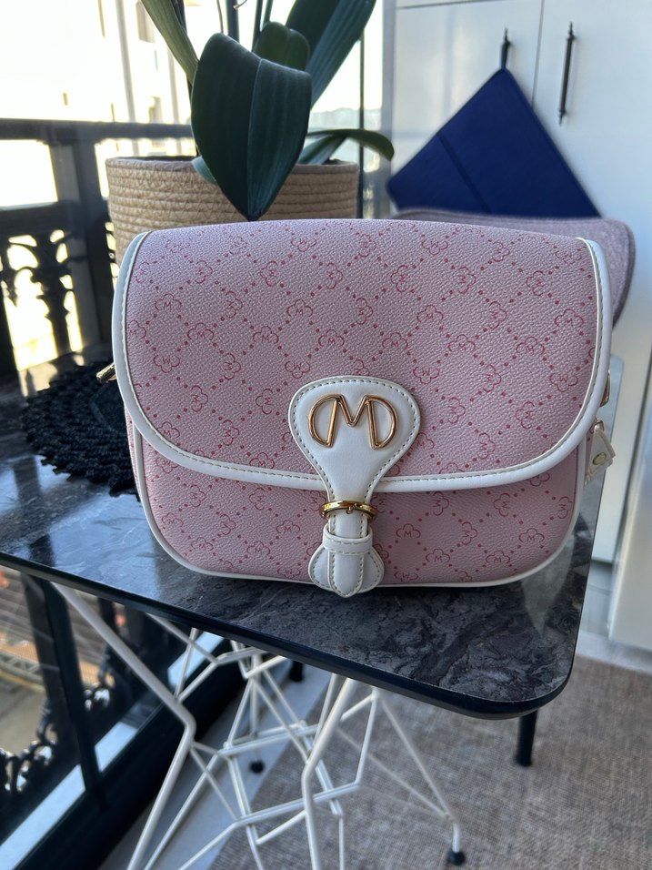 Pastel pembe deri çanta, baskılı desen ve tokalı kapak detayına sahiptir. Modern klasik tarzıyla Paris şıklığını yansıtır. Günlük kullanıma uygundur. Ürün hiç kullanılmadı. 1 kere bile takılmadı sıfırdır. Hiçbir sorun yoktur.