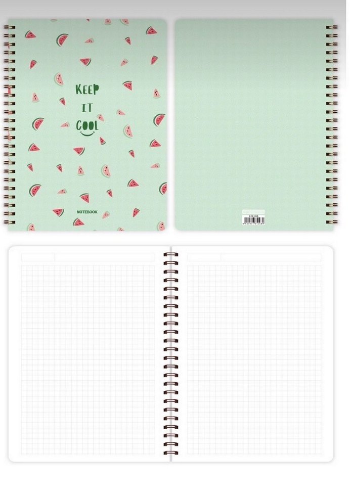 Pastel yeşil renkli, spiralli ve kareli sayfalara sahip defter. Kapağında karpuz dilimleri ve 'KEEP IT COOL' yazısı bulunur. Az kullanıldı