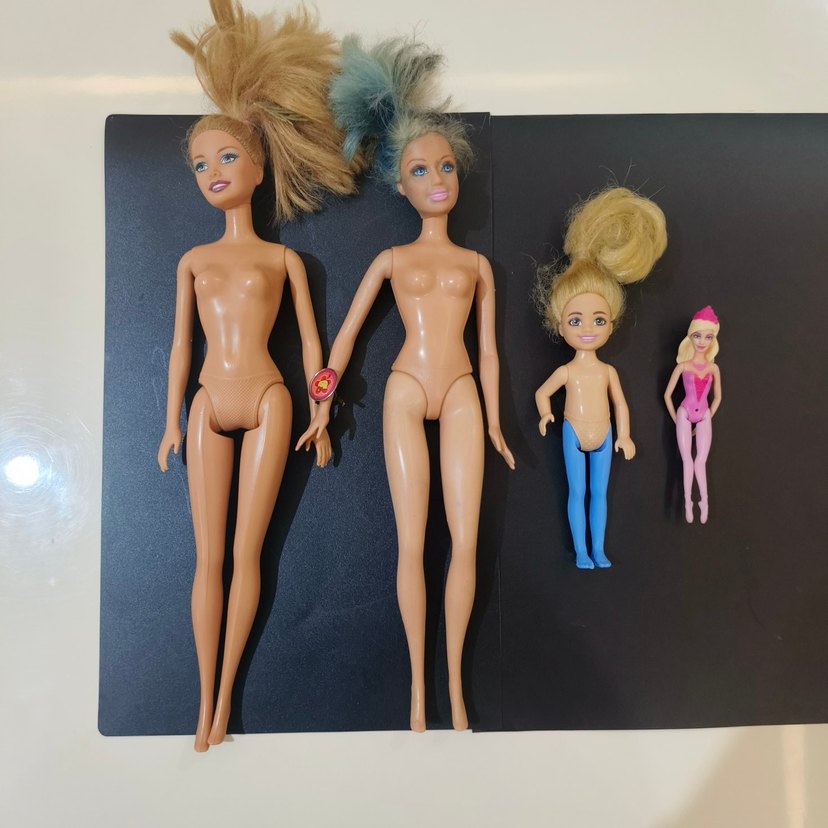 Koleksiyonumdan çıkardığım, farklı dönemlere ait 4 adet orijinal Mattel Barbie bebek setidir. Bebeklerin arkasındaki marka mühürleri fotoğraflarda mevcuttur. Set İçeriği ve Durumu: 2 Adet Büyük Boy Barbie: Bir tanesinin saçında hafif kesilme ve boyama (mavi/siyah tonlarında) mevcuttur. Diğerinin saçları daha iyi durumdadır ancak genel olarak deformeler ve zamana bağlı yıpranmalar görülebilir. 1 Adet Chelsea Bebek (Orta Boy): Mavi taytlı, 2021 Mattel üretimi orijinal figürdür. 1 Adet Mini Figür (Küçük Boy): Pembe mayolu, Mattel üretimi küçük boy Barbie figürüdür. Önemli Not: Bebekler kıyafetsizdir ve fotoğraflarda görülen mevcut durumlarıyla satıştadır. Saç bakımı veya yenileme yapmak isteyenler ya da yedek parça olarak kullanmak isteyenler için uygun fiyatlı tutulmuştur.