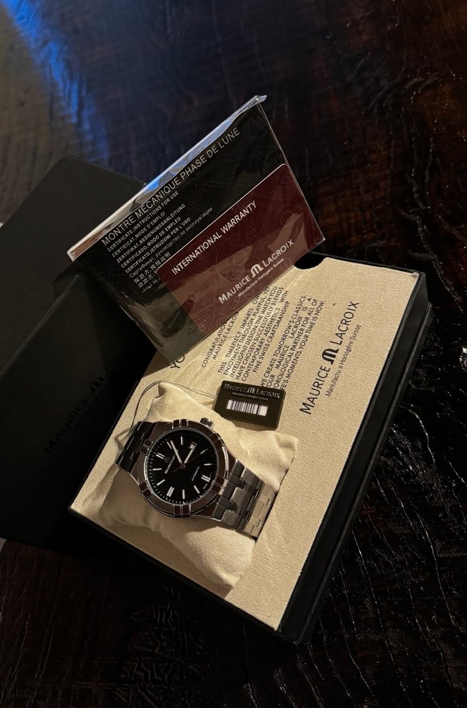 Maurice Lacroix erkek kol saati, siyah kadran ve metal bilezik ile modern ve iş stilini bir araya getiriyor. Uluslararası garanti ve orijinal kutu ile birlikte. İthal sıfır ürün / eta makine / bulunmaz fiyat