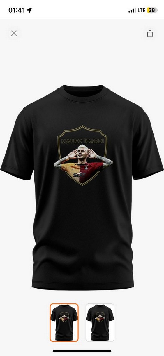 Pamuk siyah erkek tişört, yuvarlak yaka ve kısa kollu. Baskılı Mauro Icardi görseliyle, rahat kesim ve normal boyda, sokak stiliyle uyumlu.