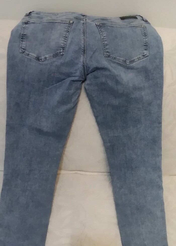Orginal mavi dar paça yüksek bel 30 31 beden rahat likralı boyu 30 sol üst bacakda biraz esneme var fotoğraf da görülüyor.