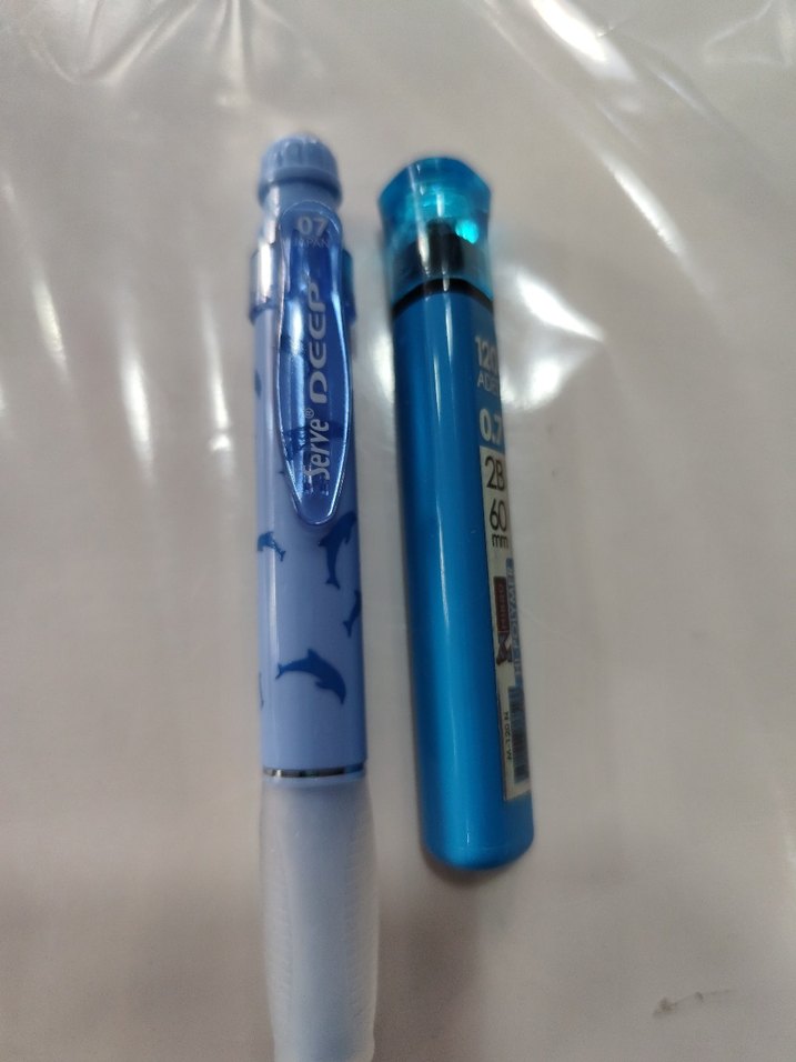 Serve deep Mavi renkte, yunus desenli 0.7 mm mekanik kalem ve yanında kalem ucu kutusu seti. ️