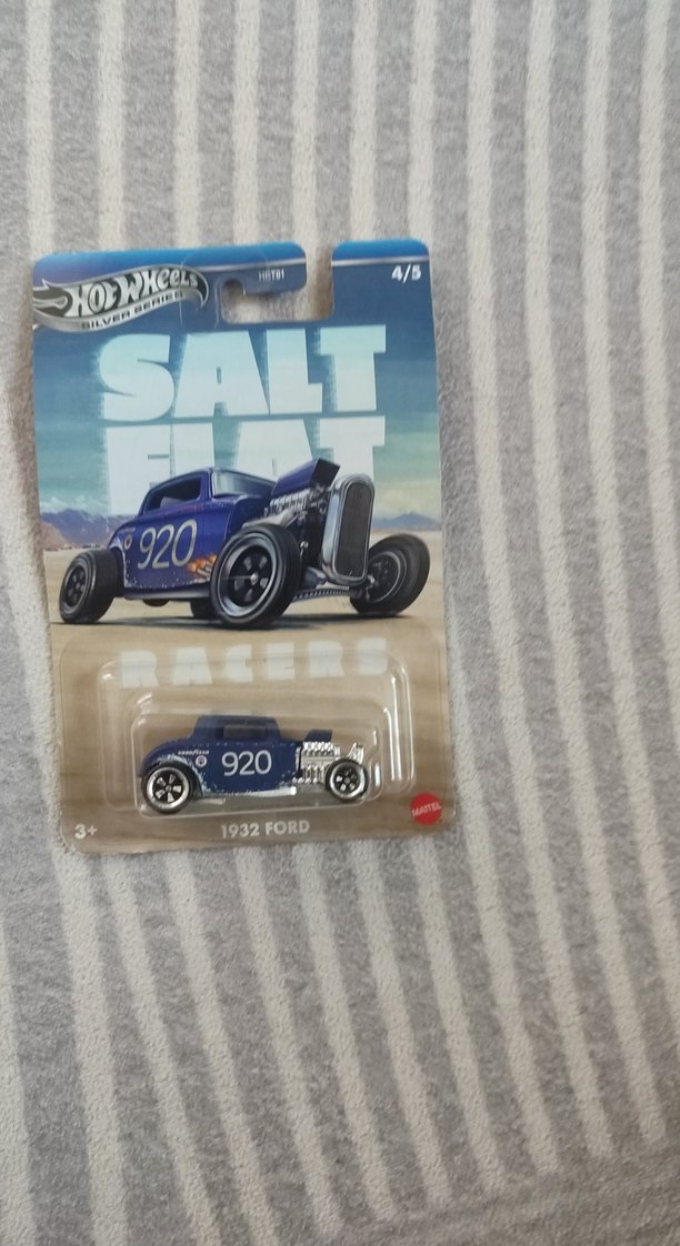 Koyu mavi renkte, yan tarafında 920 numarası bulunan 1932 Ford model oyuncak araba. Hot Wheels Salt Flat Racers serisine ait detaylı tasarım.