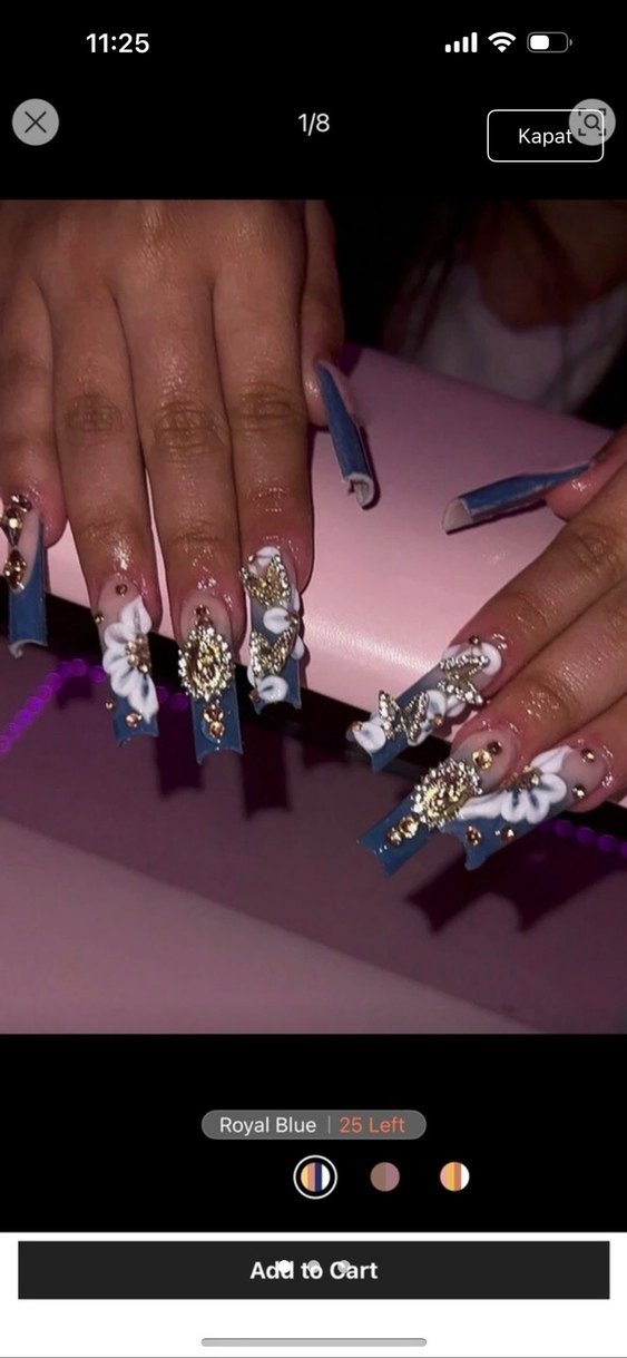 Mavi 3D Çiçekli Tırnak takma 24 adet shein lolita
