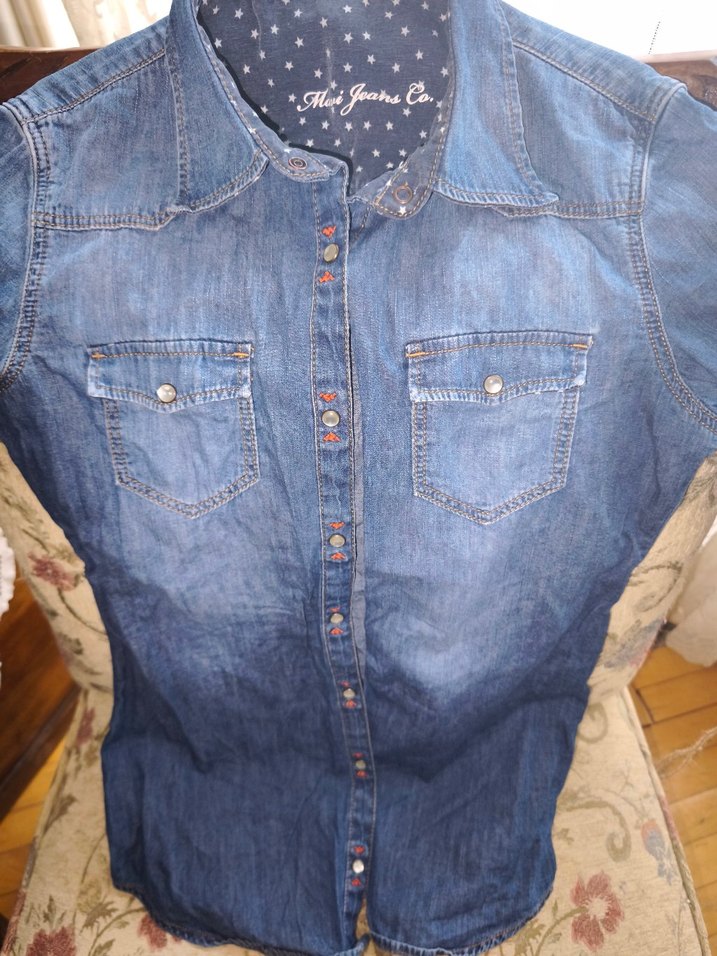 çıtçıtlı, kapri kollu ve yakalı bu fitted denim gömlek, günlük kullanıma uygun trend gömlek
